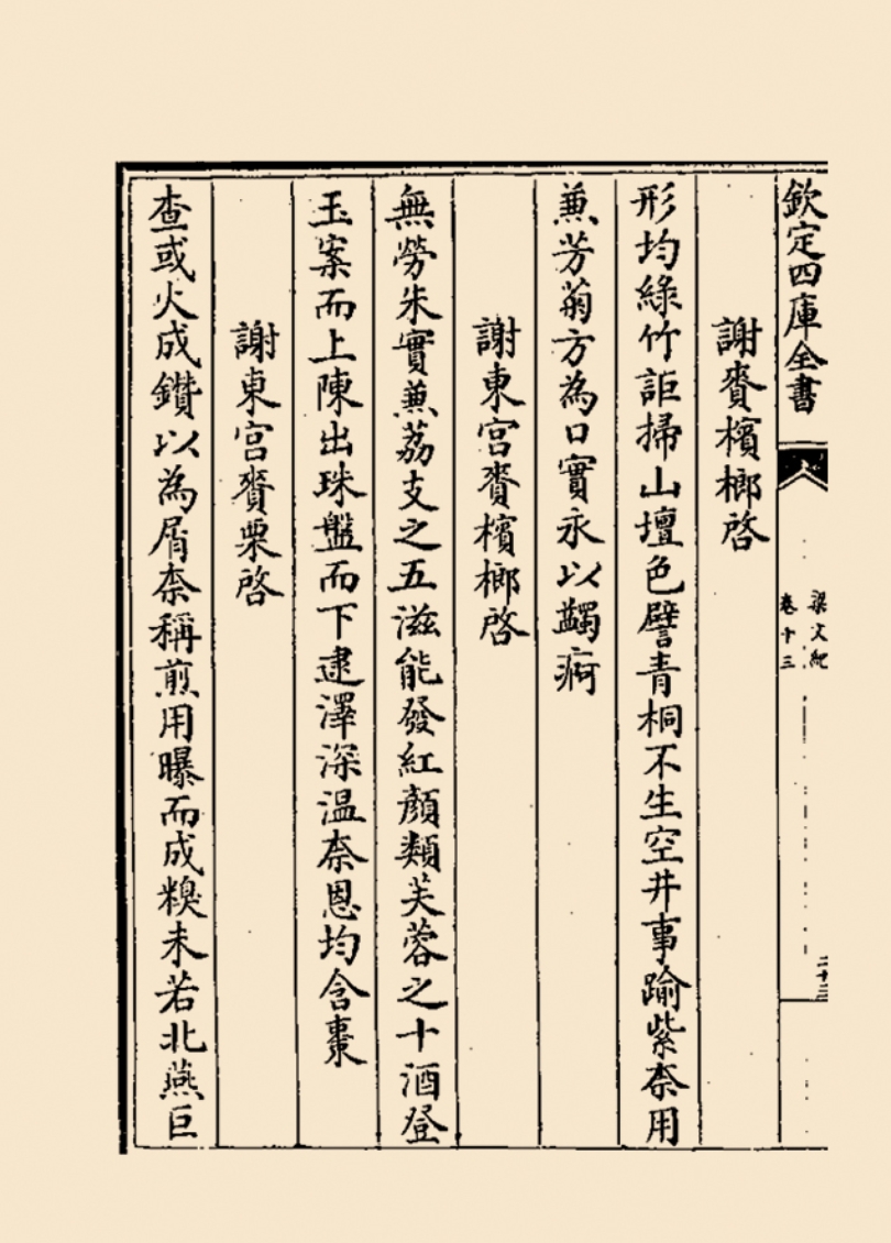 五、南朝梁文学家庾肩吾《谢赉槟榔启》《谢东宫赉槟榔启》。庾肩吾(公元487年—551年),字子慎。南朝梁文学家、书法理论家。明代张溥辑有《庾度支集》,收有其两篇谢赐槟榔启文。