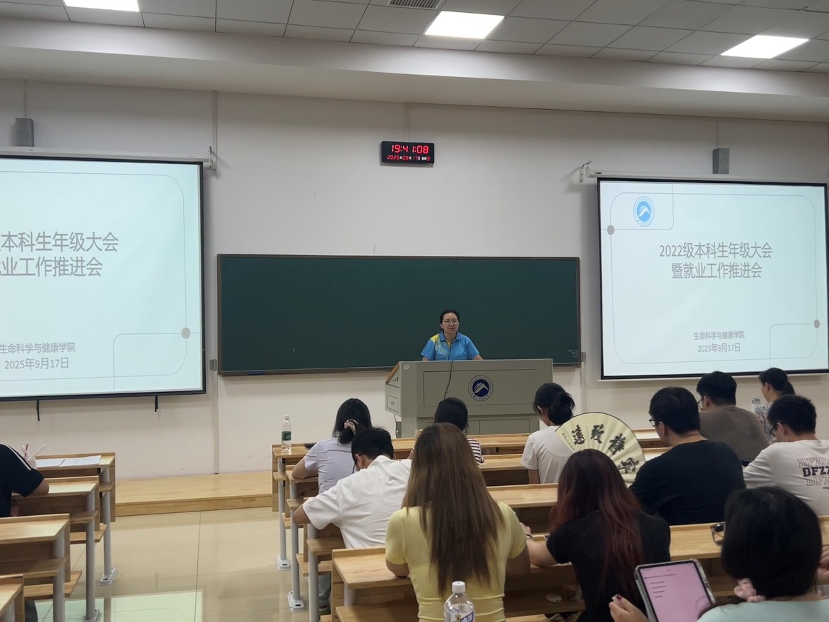 为扎实推进2022级本科生毕业季学业规划与就业指导工作,9月17日晚7点半,taptap于敏行楼C512召开年级大会暨就业工作推进会。会议由2022级辅导员易临群主持,学院党委副书记舒艳出席并讲话,全体2022级本科生参会。