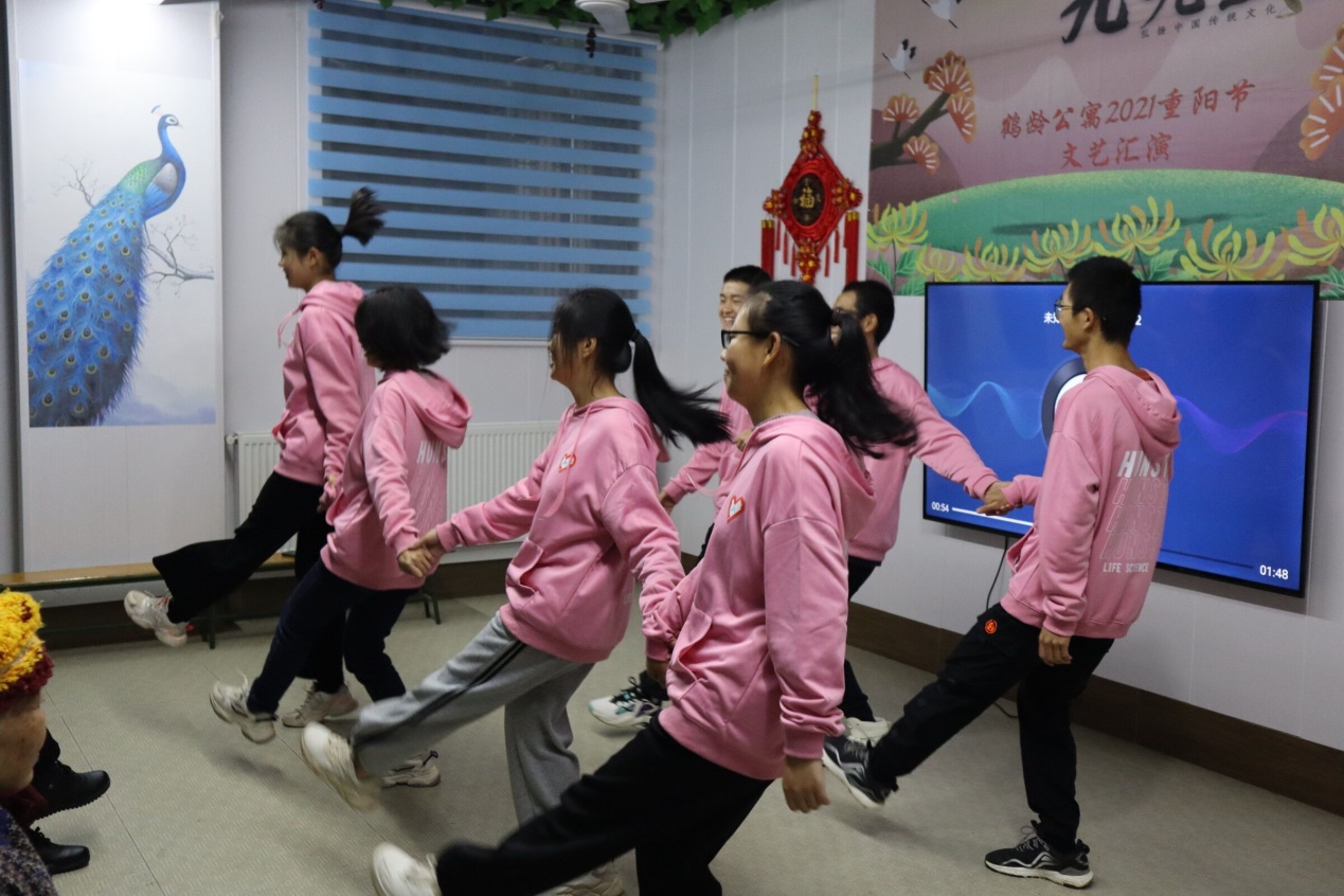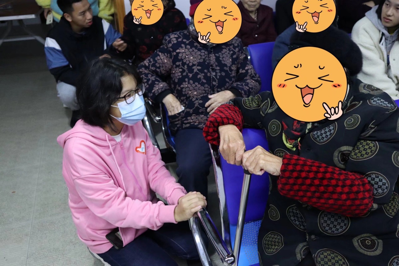紧接着,我们为爷爷奶奶们表演了排练已久的节目,taptap志愿团的小团子们深情演唱了歌曲《少年》、《栀子花开》并跳了广场舞《酒醉的蝴蝶》和手势舞《听我说谢谢你》,机电工程学院志愿团则带来了《三句半》、黄梅戏、舞蹈串烧和大合唱《我和我的祖国》,最后小团子们还和几位奶奶学习跳了广场舞。